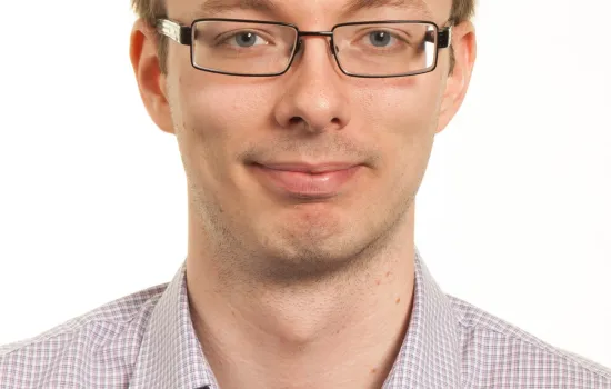 Trinity tutor Luke Rostill sits smiling in a tutorial.